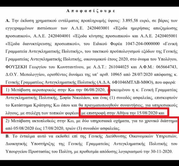 Δημοσίευσε ένα έγγραφο με το οποίο θα λάβει αμοιβή για έξοδα τέσσερα χιλιάρικα.Με αυτά θα είχε αναχώρηση στις 6 Αυγούστου και επιστροφή στις 15 Αυγούστου στην Κω και συνοδεία 4 άτομα.