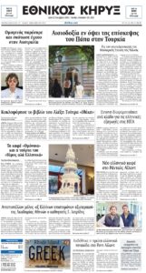 Δείτε κάτω στη φωτογραφία το πρωτοσέλιδο της εγκυρότατης και παλαιότατης εφημερίδας ΕΘΝΙΚΟΣ ΚΗΡΥΞ Νεας Υόρκης.